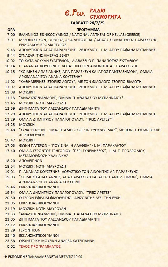26/7/25 – Πρόγραμμα Λειτουργίας Ραδιοφώνου ΕΡΩ: “Ε.Ρω. – ΡαδιοΣυχνότητα”
