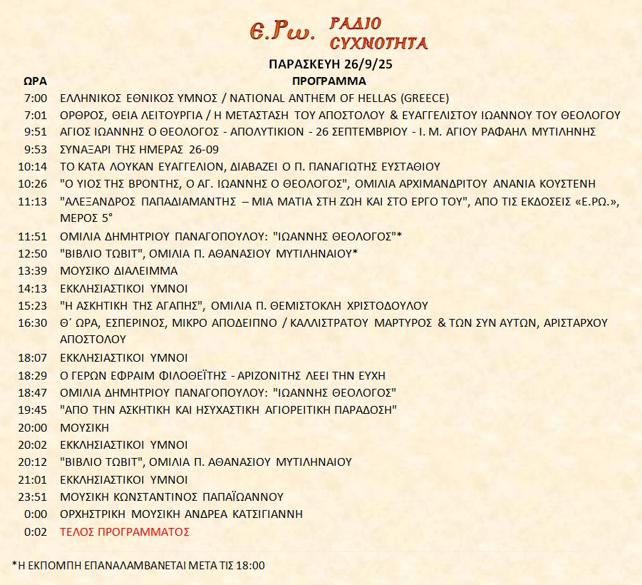 26 Σεπτεμβρίου 2025 σε ΑΡΧΕΙΑ ΗΧΟΥ, ΕΡΩ - ΡαδιοΣυχνότητα, ΟΠΤΙΚΟΑΚΟΥΣΤΙΚΟ ΥΛΙΚΟ Σήμερα 26/9/25, μπορείτε να ακούσετε : Γιὰ τὴ σύνδεση μπορεῖτε νὰ πατήστε στην παρακάτω εικόνα : ή χρησιμοποιήσετε τὸ παρακάτω link : Πρόγραμμα Λειτουργίας Ραδιοφώνου ΕΡΩ: “Ε.Ρω. – ΡαδιοΣυχνότητα”https://welove.radio/radio/ero-radiosixnotita/ Καλή σας ακρόαση Ετικέτες - Σχετικά Θέματα ΕΡΩ ΡΑΔΙΟΦΩΝΟ ΕΡΩ-ΡΑΔΙΟΣΥΧΝΟΤΗΤΑ Προηγούμενο