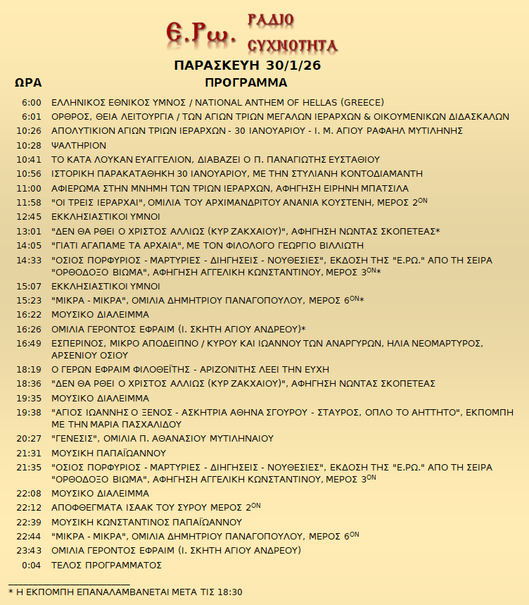 30 Ιανουαρίου 2026 σε ΑΡΧΕΙΑ ΗΧΟΥ, ΕΡΩ - ΡαδιοΣυχνότητα, ΟΠΤΙΚΟΑΚΟΥΣΤΙΚΟ ΥΛΙΚΟ Σήμερα 30/01/26, μπορείτε να ακούσετε: Γιὰ τὴ σύνδεση μπορεῖτε νὰ πατήστε στην παρακάτω εικόνα : ή χρησιμοποιήσετε τὸ παρακάτω link : Πρόγραμμα Λειτουργίας Ραδιοφώνου ΕΡΩ: “Ε.Ρω. – ΡαδιοΣυχνότητα”https://welove.radio/radio/ero-radiosixnotita/ Καλή σας ακρόαση Ετικέτες - Σχετικά Θέματα ΕΡΩ ΡΑΔΙΟΦΩΝΟ ΕΡΩ-ΡΑΔΙΟΣΥΧΝΟΤΗΤΑ Προηγούμενο