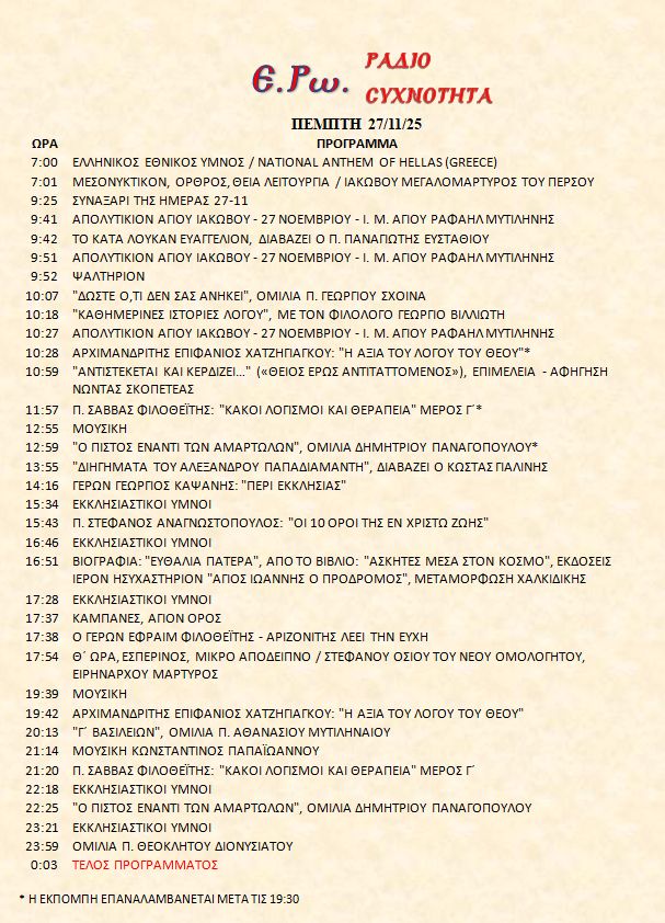 27 Νοεμβρίου 2025 σε ΑΡΧΕΙΑ ΗΧΟΥ, ΕΡΩ - ΡαδιοΣυχνότητα, ΟΠΤΙΚΟΑΚΟΥΣΤΙΚΟ ΥΛΙΚΟ Σήμερα 27/11/25, μπορείτε να ακούσετε: Γιὰ τὴ σύνδεση μπορεῖτε νὰ πατήστε στην παρακάτω εικόνα : ή χρησιμοποιήσετε τὸ παρακάτω link : Πρόγραμμα Λειτουργίας Ραδιοφώνου ΕΡΩ: “Ε.Ρω. – ΡαδιοΣυχνότητα”https://welove.radio/radio/ero-radiosixnotita/ Καλή σας ακρόαση Ετικέτες - Σχετικά Θέματα ΕΡΩ ΡΑΔΙΟΦΩΝΟ ΕΡΩ-ΡΑΔΙΟΣΥΧΝΟΤΗΤΑ Προηγούμενο