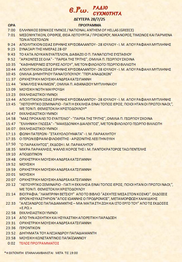 28 Ιουλίου 2025 σε ΑΡΧΕΙΑ ΗΧΟΥ, ΕΡΩ - ΡαδιοΣυχνότητα, ΟΠΤΙΚΟΑΚΟΥΣΤΙΚΟ ΥΛΙΚΟ Σήμερα 28/7/25, μπορείτε να ακούσετε : Γιὰ τὴ σύνδεση μπορεῖτε νὰ πατήστε στην παρακάτω εικόνα : ή χρησιμοποιήσετε τὸ παρακάτω link : Πρόγραμμα Λειτουργίας Ραδιοφώνου ΕΡΩ: “Ε.Ρω. – ΡαδιοΣυχνότητα”https://welove.radio/radio/ero-radiosixnotita/ Καλή σας ακρόαση Ετικέτες - Σχετικά Θέματα ΕΡΩ ΡΑΔΙΟΦΩΝΟ ΕΡΩ-ΡΑΔΙΟΣΥΧΝΟΤΗΤΑ Προηγούμενο