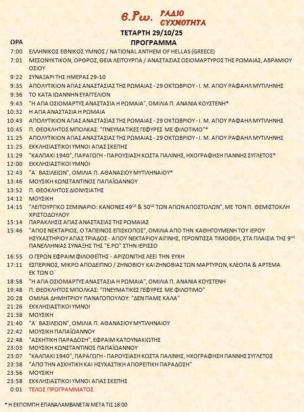 29 Οκτωβρίου 2025 σε ΑΡΧΕΙΑ ΗΧΟΥ, ΕΡΩ - ΡαδιοΣυχνότητα, ΟΠΤΙΚΟΑΚΟΥΣΤΙΚΟ ΥΛΙΚΟ Σήμερα 29/10/25, μπορείτε να ακούσετε: Γιὰ τὴ σύνδεση μπορεῖτε νὰ πατήστε στην παρακάτω εικόνα : ή χρησιμοποιήσετε τὸ παρακάτω link : Πρόγραμμα Λειτουργίας Ραδιοφώνου ΕΡΩ: “Ε.Ρω. – ΡαδιοΣυχνότητα”https://welove.radio/radio/ero-radiosixnotita/ Καλή σας ακρόαση Ετικέτες - Σχετικά Θέματα ΕΡΩ ΡΑΔΙΟΦΩΝΟ ΕΡΩ-ΡΑΔΙΟΣΥΧΝΟΤΗΤΑ Προηγούμενο