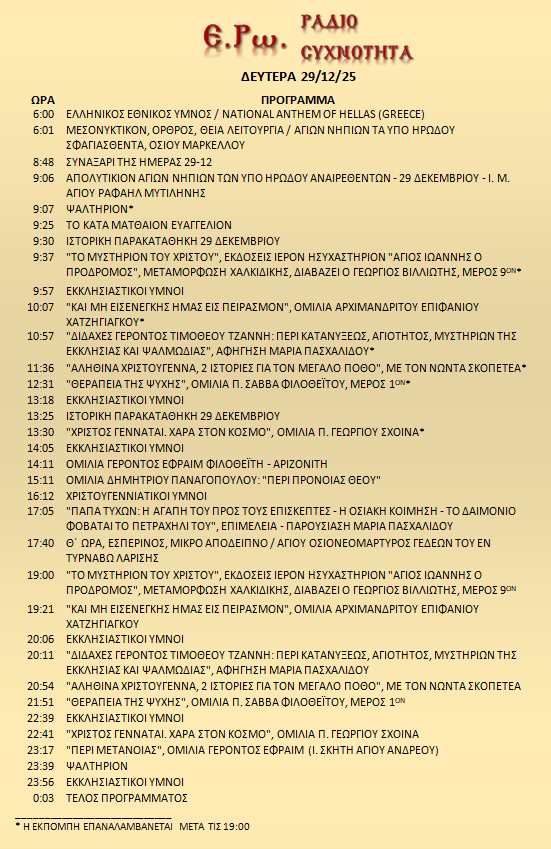 29 Δεκεμβρίου 2025 σε ΑΡΧΕΙΑ ΗΧΟΥ, ΕΡΩ - ΡαδιοΣυχνότητα, ΟΠΤΙΚΟΑΚΟΥΣΤΙΚΟ ΥΛΙΚΟ Σήμερα 29/12/25, μπορείτε να ακούσετε: Γιὰ τὴ σύνδεση μπορεῖτε νὰ πατήστε στην παρακάτω εικόνα : ή χρησιμοποιήσετε τὸ παρακάτω link : Πρόγραμμα Λειτουργίας Ραδιοφώνου ΕΡΩ: “Ε.Ρω. – ΡαδιοΣυχνότητα”https://welove.radio/radio/ero-radiosixnotita/ Καλή σας ακρόαση Ετικέτες - Σχετικά Θέματα ΕΡΩ ΡΑΔΙΟΦΩΝΟ ΕΡΩ-ΡΑΔΙΟΣΥΧΝΟΤΗΤΑ Προηγούμενο