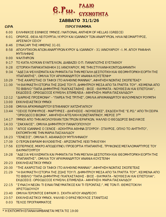 31 Ιανουαρίου 2026 σε ΑΡΧΕΙΑ ΗΧΟΥ, ΕΡΩ - ΡαδιοΣυχνότητα, ΟΠΤΙΚΟΑΚΟΥΣΤΙΚΟ ΥΛΙΚΟ Σήμερα 31/01/26, μπορείτε να ακούσετε: Γιὰ τὴ σύνδεση μπορεῖτε νὰ πατήστε στην παρακάτω εικόνα : ή χρησιμοποιήσετε τὸ παρακάτω link : Πρόγραμμα Λειτουργίας Ραδιοφώνου ΕΡΩ: “Ε.Ρω. – ΡαδιοΣυχνότητα”https://welove.radio/radio/ero-radiosixnotita/ Καλή σας ακρόαση Ετικέτες - Σχετικά Θέματα ΕΡΩ ΡΑΔΙΟΦΩΝΟ ΕΡΩ ΡΑΔΙΣΥΧΝΟΤΗΤΑ Προηγούμενο