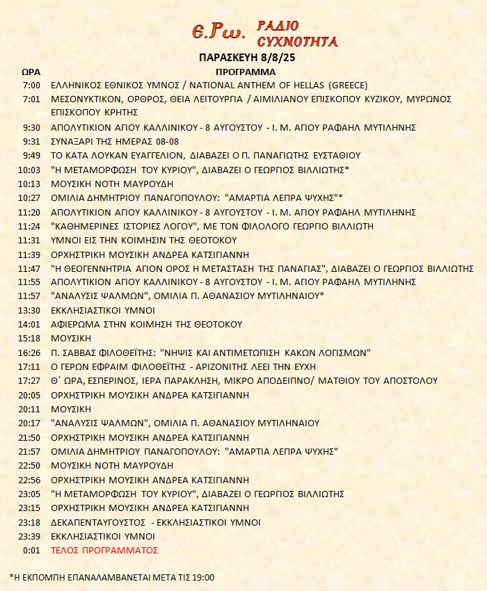 8 Αυγούστου 2025 σε ΑΡΧΕΙΑ ΗΧΟΥ, ΕΡΩ - ΡαδιοΣυχνότητα, ΟΠΤΙΚΟΑΚΟΥΣΤΙΚΟ ΥΛΙΚΟ Σήμερα 8/8/25, μπορείτε να ακούσετε : Γιὰ τὴ σύνδεση μπορεῖτε νὰ πατήστε στην παρακάτω εικόνα : ή χρησιμοποιήσετε τὸ παρακάτω link : Πρόγραμμα Λειτουργίας Ραδιοφώνου ΕΡΩ: “Ε.Ρω. – ΡαδιοΣυχνότητα”https://welove.radio/radio/ero-radiosixnotita/ Καλή σας ακρόαση Ετικέτες - Σχετικά Θέματα ΕΡΩ ΡΑΔΙΟΦΩΝΟ ΕΡΩ-ΡΑΔΙΟΣΥΧΝΟΤΗΤΑ Προηγούμενο