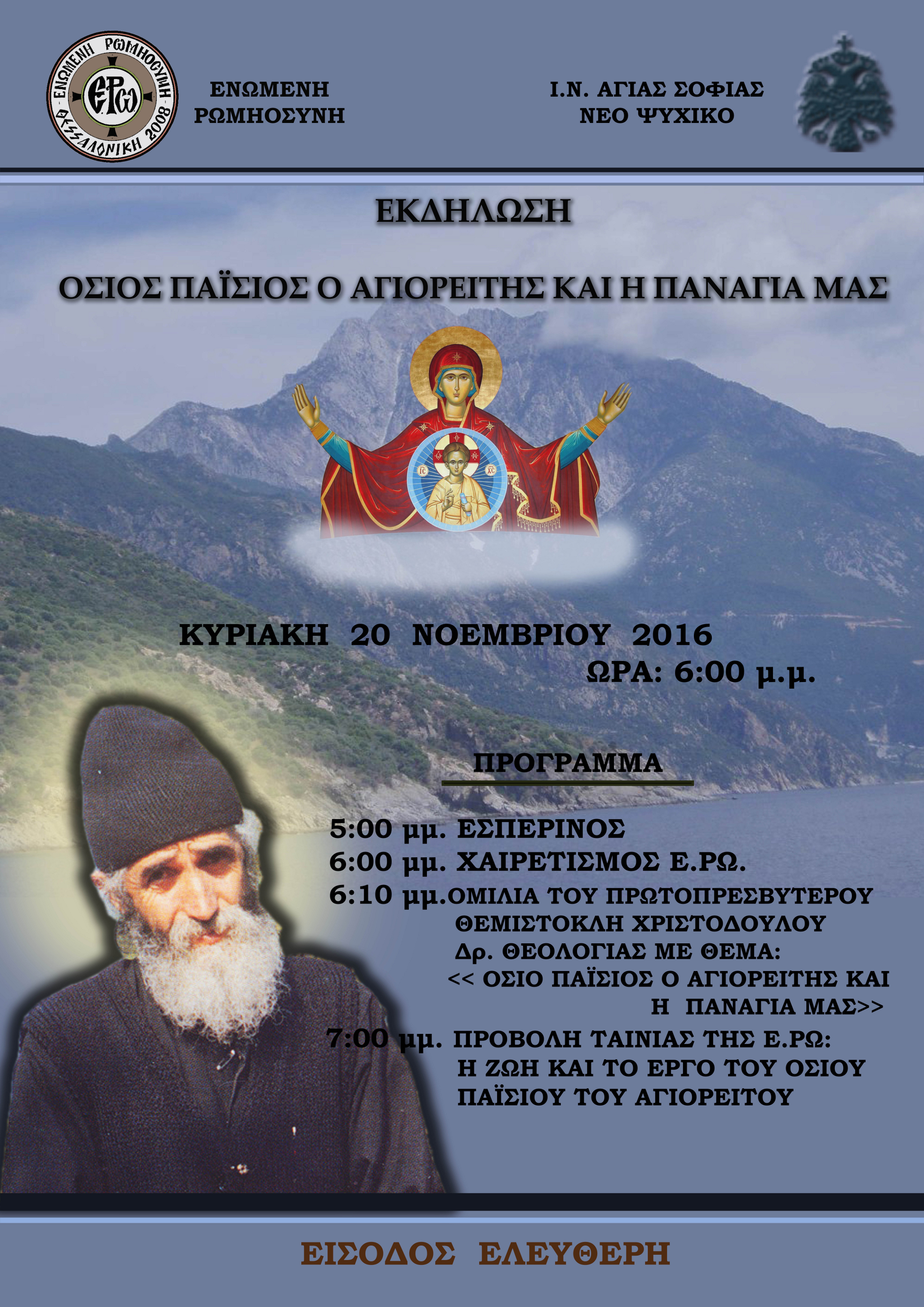 18 Νοεμβρίου 2016 σε ΗΜΕΡΙΔΕΣ-ΕΚΔΗΛΩΣΕΙΣ, ΧΑΡΤΗΣ ΑΘΗΝΑΣ, ΧΑΡΤΗΣ ΡΩΜΝΙΩΝ Ετικέτες - Σχετικά Θέματα ΝΕΟ ΨΥΧΙΚΟ ΟΣΙΟΣ ΠΑΪΣΙΟΣ Π. ΘΕΜΙΣΤΟΚΛΗΣ ΧΡΙΣΤΟΔΟΥΛΟΥ ΠΑΝΑΓΙΑ Επόμενο Προηγούμενο