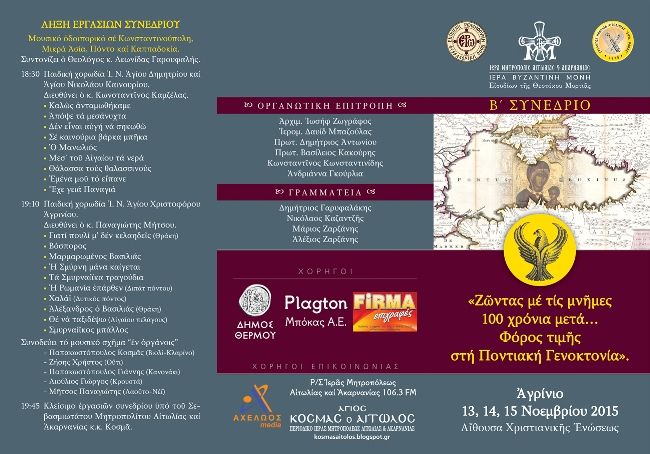 2 Νοεμβρίου 2015 σε ΗΜΕΡΙΔΕΣ-ΕΚΔΗΛΩΣΕΙΣ Στο Αγρίνιο και στην Αίθουσα Χριστιανικής Ενώσεως, θα πραγματοποιηθεί η εκδήλωση με θέμα : “Ζώντας με τις μνήμες 100 χρόνια μετά … Φόρος τιμής στη ποντιακή γενοκτονία.” Ετικέτες - Σχετικά Θέματα ΑΓΡΙΝΙΟ ΓΕΝΟΚΤΟΝΙΑ Ζώντας με τις μνήμες 100 χρόνια μετά ... Φόρος τιμής στη ποντιακή γενοκτονία. ΠΟΝΤΙΑΚΗ ΓΕΝΟΚΤΟΝΙΑ ΠΟΝΤΟΣ Επόμενο Προηγούμενο