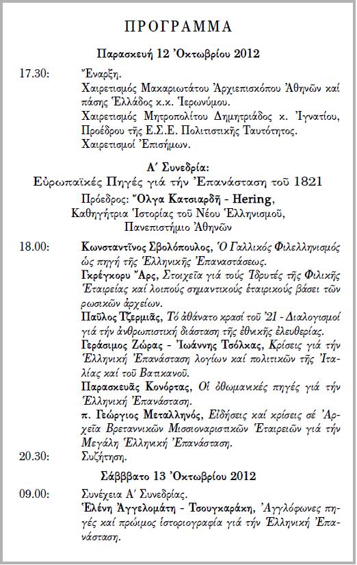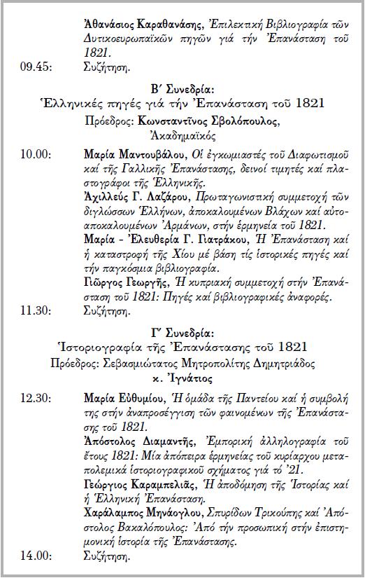 ΣΥΝΕΔΡΙΟ: ΙΣΤΟΡΙΟΓΡΑΦΙΑ ΚΑΙ ΠΗΓΕΣ ΓΙΑ ΤΗΝ ΕΡΜΗΝΕΙΑ ΤΟΥ 1821