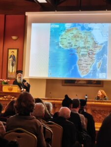 Μὲ τὴ βοήθεια ὀπτικοακουστικοῦ ὑλικοῦ (βίντεο καὶ φωτογραφίες) γνωρίσαμε ἀπὸ κοντὰ τὴν καθημερινότητα τῶν ἀνθρώπων ἐκεῖ, τὶς δυσκολίες ποὺ καθημερινὰ ἀντιμετωπίζουν καθὼς καὶ ὁ ἴδιος . Ό Θεοφιλέστατος μεταξὺ ἄλλων ἀνέφερε, ὅτι ἡ Ὀρθοδοξία στὴν Ἀφρικὴ ἀνθίζει , οἱ ὀρθόδοξοι πληθαίνουν, ὅμως οἱ ἀπαιτήσεις μεγαλώνουν , οἱ ἀνάγκες εἶναι πάρα πολλές, μεταξὺ αὐτῶν , σὲ στελέχη, κατηχητές, ἰατρούς, εκπαιδευτικούς, γεωπόνους κ.α