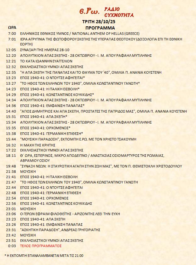 28 Οκτωβρίου 2025 σε ΑΡΧΕΙΑ ΗΧΟΥ, ΕΡΩ - ΡαδιοΣυχνότητα, ΟΠΤΙΚΟΑΚΟΥΣΤΙΚΟ ΥΛΙΚΟ Σήμερα 28/10/25, μπορείτε να ακούσετε: Γιὰ τὴ σύνδεση μπορεῖτε νὰ πατήστε στην παρακάτω εικόνα : ή χρησιμοποιήσετε τὸ παρακάτω link : Πρόγραμμα Λειτουργίας Ραδιοφώνου ΕΡΩ: “Ε.Ρω. – ΡαδιοΣυχνότητα”https://welove.radio/radio/ero-radiosixnotita/ Καλή σας ακρόαση Ετικέτες - Σχετικά Θέματα ΕΡΩ ΡΑΔΙΟΦΩΝΟ ΕΡΩ-ΡΑΔΙΟΣΥΧΝΟΤΗΤΑ Προηγούμενο