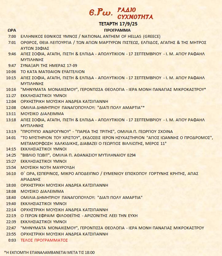 17 Σεπτεμβρίου 2025 σε ΑΡΧΕΙΑ ΗΧΟΥ, ΕΡΩ - ΡαδιοΣυχνότητα, ΟΠΤΙΚΟΑΚΟΥΣΤΙΚΟ ΥΛΙΚΟ Σήμερα 17/9/25, μπορείτε να ακούσετε : Γιὰ τὴ σύνδεση μπορεῖτε νὰ πατήστε στην παρακάτω εικόνα : ή χρησιμοποιήσετε τὸ παρακάτω link : Πρόγραμμα Λειτουργίας Ραδιοφώνου ΕΡΩ: “Ε.Ρω. – ΡαδιοΣυχνότητα”https://welove.radio/radio/ero-radiosixnotita/ Καλή σας ακρόαση Ετικέτες - Σχετικά Θέματα ΕΡΩ ΡΑΔΙΟΦΩΝΟ ΕΡΩ-ΡΑΔΙΟΣΥΧΝΟΤΗΤΑ Προηγούμενο