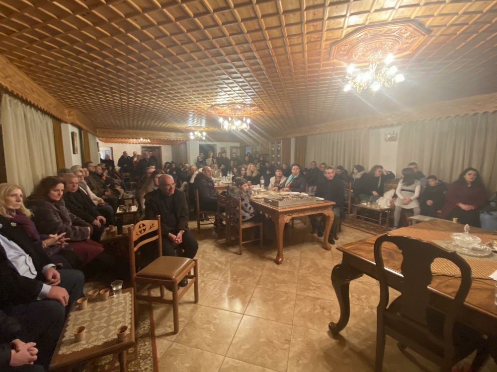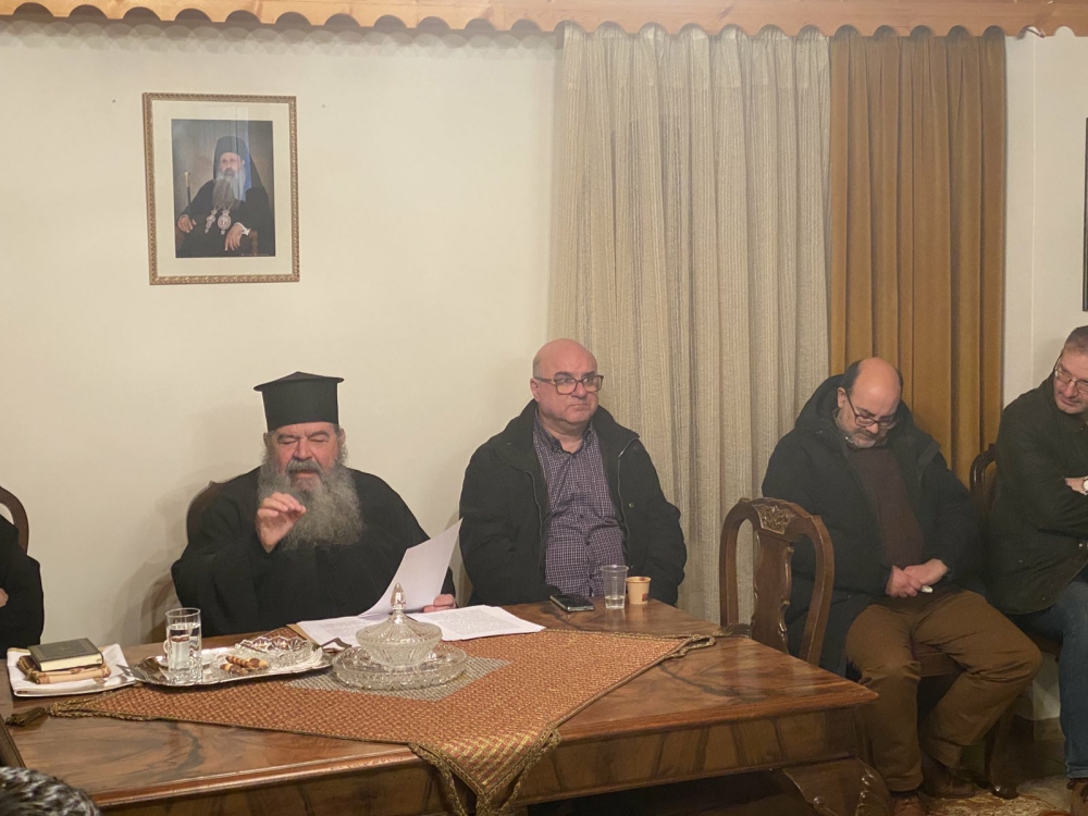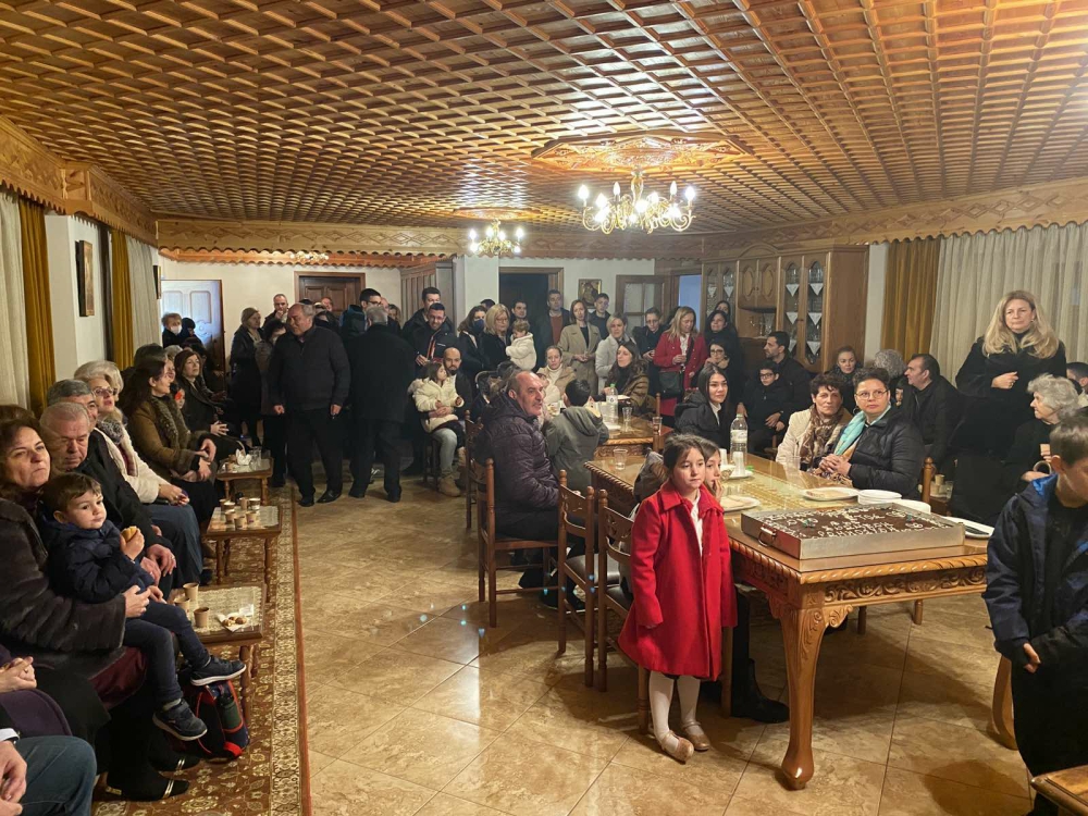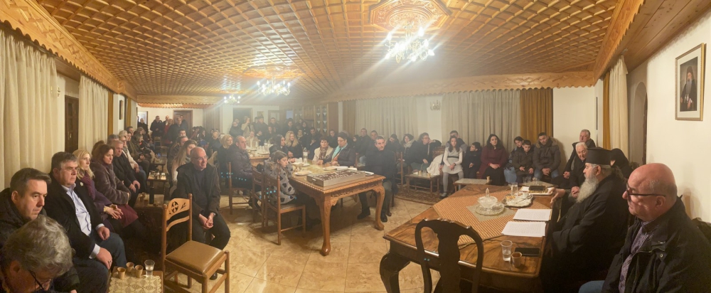 Έπειτα, ευλόγησε την Αγιοβασιλόπιτα του σωματείου μας και τα κομμάτια μοιράστηκαν πρώτα στα παιδιά, έπειτα στους ταξιδιώτες που ήρθαν από μακριά και ύστερα στους υπόλοιπους αδελφούς μας. Το δώρο ήταν μία συλλογή βιβλίων από τις εκδόσεις του σωματείου. Για τη νεότητα της Ε.ΡΩ. είχαμε φυλάξει μία ακόμη «έκπληξη» και έτσι ένα δεύτερο δώρο δόθηκε από την υπεύθυνη της νεότητας ύστερα από μία ξεχωριστή κλήρωση.