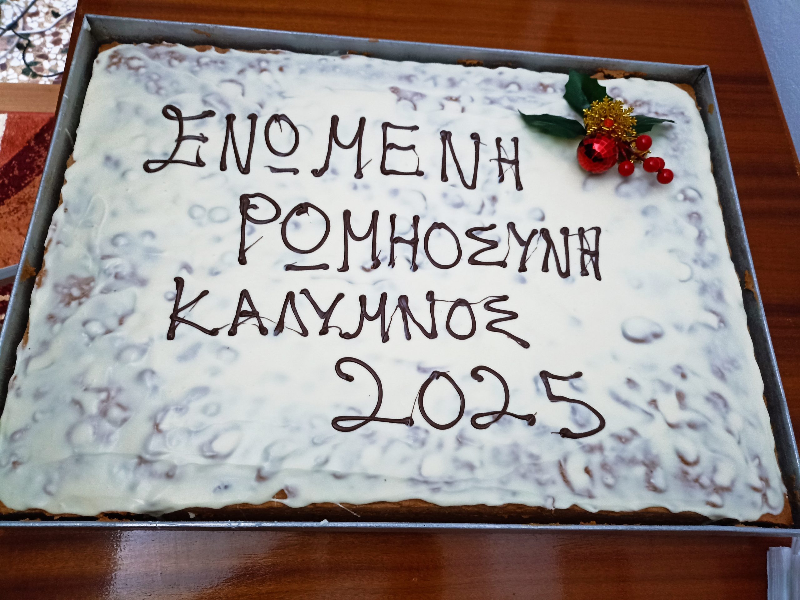 Η Ενωμένη Ρωμηοσύνη στην Κάλυμνο έκοψε την Πρωτοχρονιάτικη Βασιλόπιτά της στο Κέντρο Νεότητος του Αγίου Παύλου την Κυριακή, 19 Ιανουαρίου 2025.