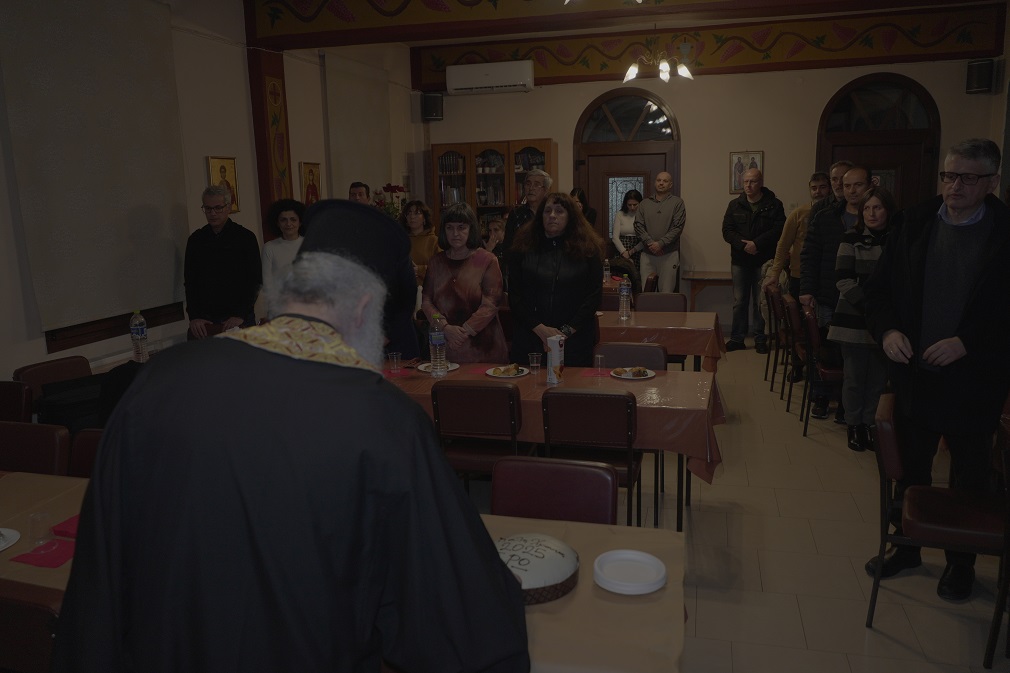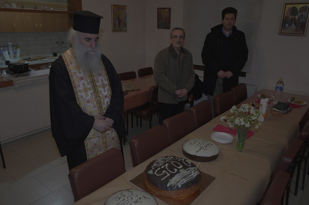 Την βασιλόπιττα ευλόγησε ο πανοσιολογιώτατος αρχιμανδρίτης π. Παύλος Ντούρος, ιεροκήρυξ της Ι. Μητροπόλεως Κίτρους, Κατερίνης και Πλαταμώνος και διευθυντής του Πν. Κέντρου της Μητροπόλεως «Ο ΑΓΙΟΣ ΦΩΤΙΟΣ». Ο π. Παύλος, μετά την ευλογία της βασιλόπιττας απηύθυνε εμπνευσμένο λόγο, τονίζοντας τη σπουδαιότητα της άρσης του προσωπικού μας σταυρού με αγάπη και εμπιστοσύνη στον Χριστό και τη μεγάλη σημασία του δοξολογικού πνεύματος με το οποίο ο χριστιανός πρέπει να αντιμετωπίζει τις δυσκολίες της ζωής. Προέτρεψε κατά τη φετινή χρονιά να προσπαθήσουμε να καλλιεργήσουμε την αρετή του θάρρους εμπρός στις δοκιμασίες και την πίστη μας στον Χριστό. Στη συνέχεια ο κ. Στέργιος Μπούγιας, θεολόγος, ιδρυτικό μέλος της Ε.Ρω και υπεύθυνος πόλεως Κατερίνης, ευχαρίστησε τον π. Παύλο για την παρουσία του και τον λόγο του. Απηύθυνε κι εκείνος ευχές, συνδέοντας τα όσα είπε ο π. Παύλος με τον βίο του Αγίου Ιωάννη τον Χρυσόστομο, που η Εκκλησία μας εόρταζε την επομένη την ανακομιδή του λειψάνου του. Τέλος, ο κ. Μπούγιας έκανε τον απολογισμό των δράσεων της Ε. Ρω. για το μέρος της ιεραποστολικής χρονιάς που διανύθηκε.