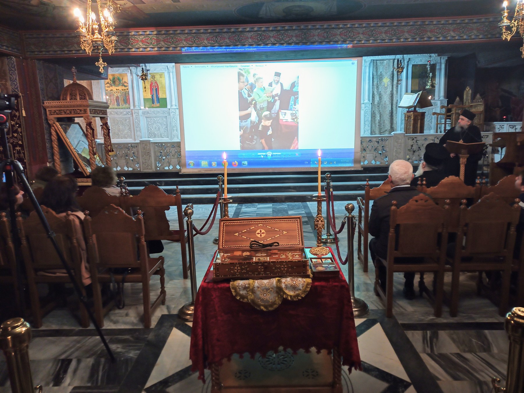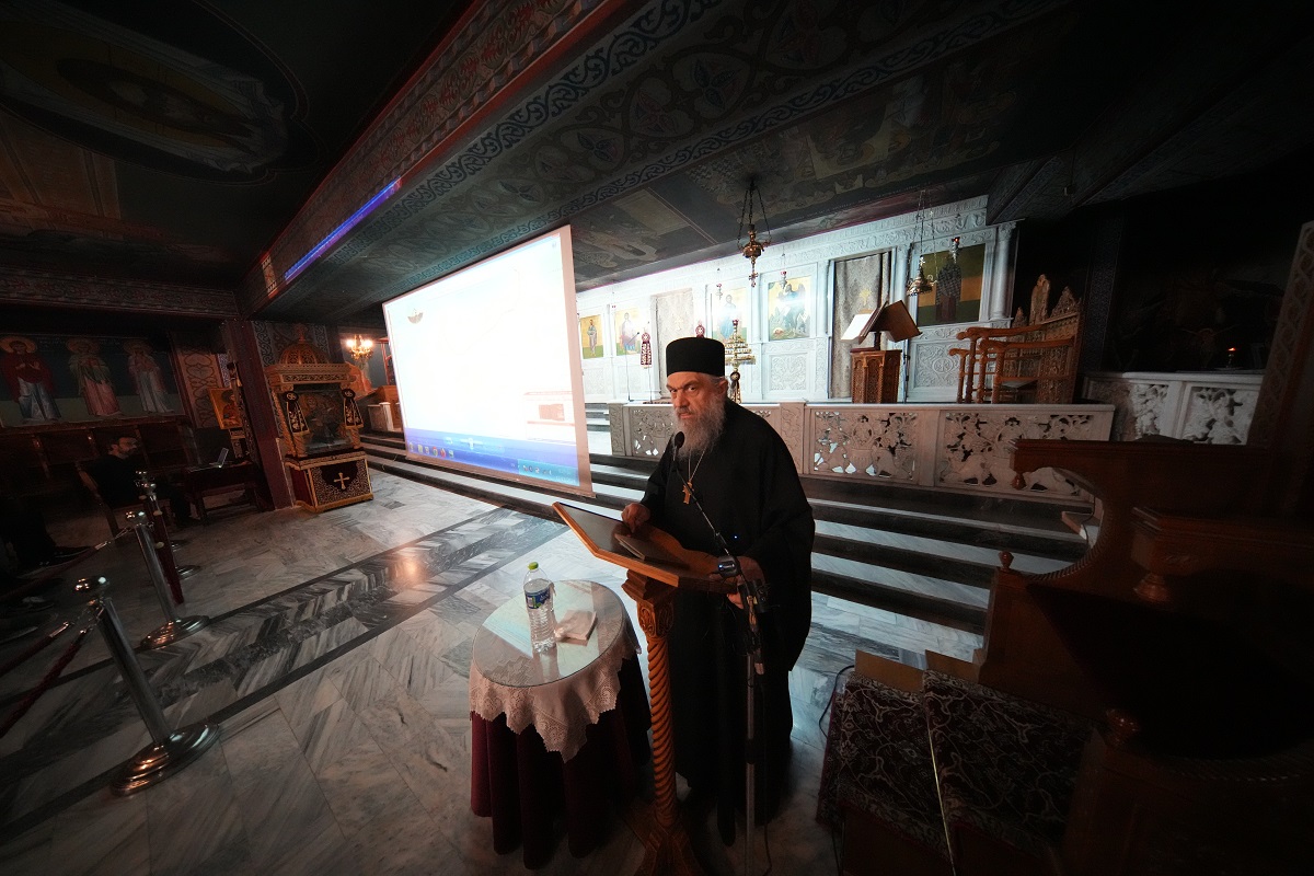 Κατά την ομιλία προβλήθηκαν και φωτογραφίες από προσκυνήματα του Γέροντα στην Καππαδοκία.