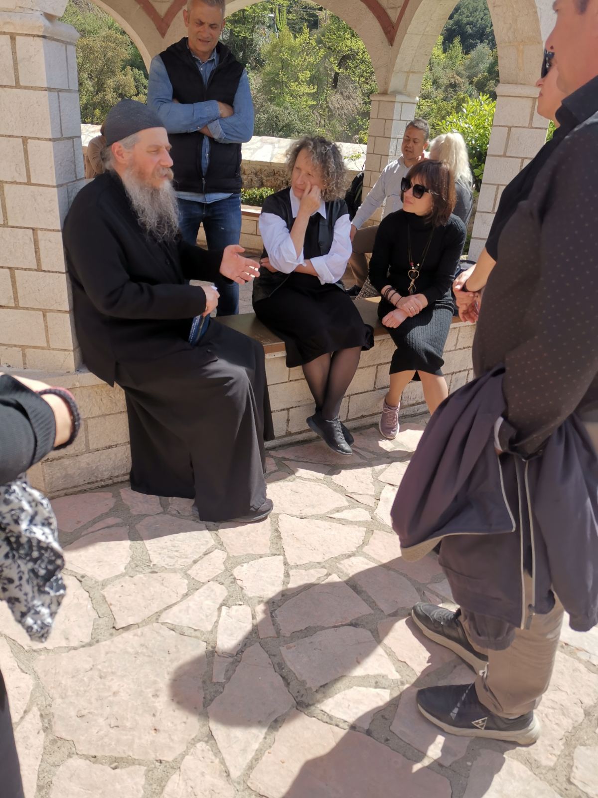 Έπειτα μεταβήκαμε στην Ι. Μ. Γηρομερίου Φιλιατών. Εκεί μας υποδέχτηκε ο ηγούμενος της Ι.Μ. Γέροντας Μεθόδιος όπου μας μίλησε για το ιστορικό της Ιεράς Μονής και όλης γενικά της περιοχής.
